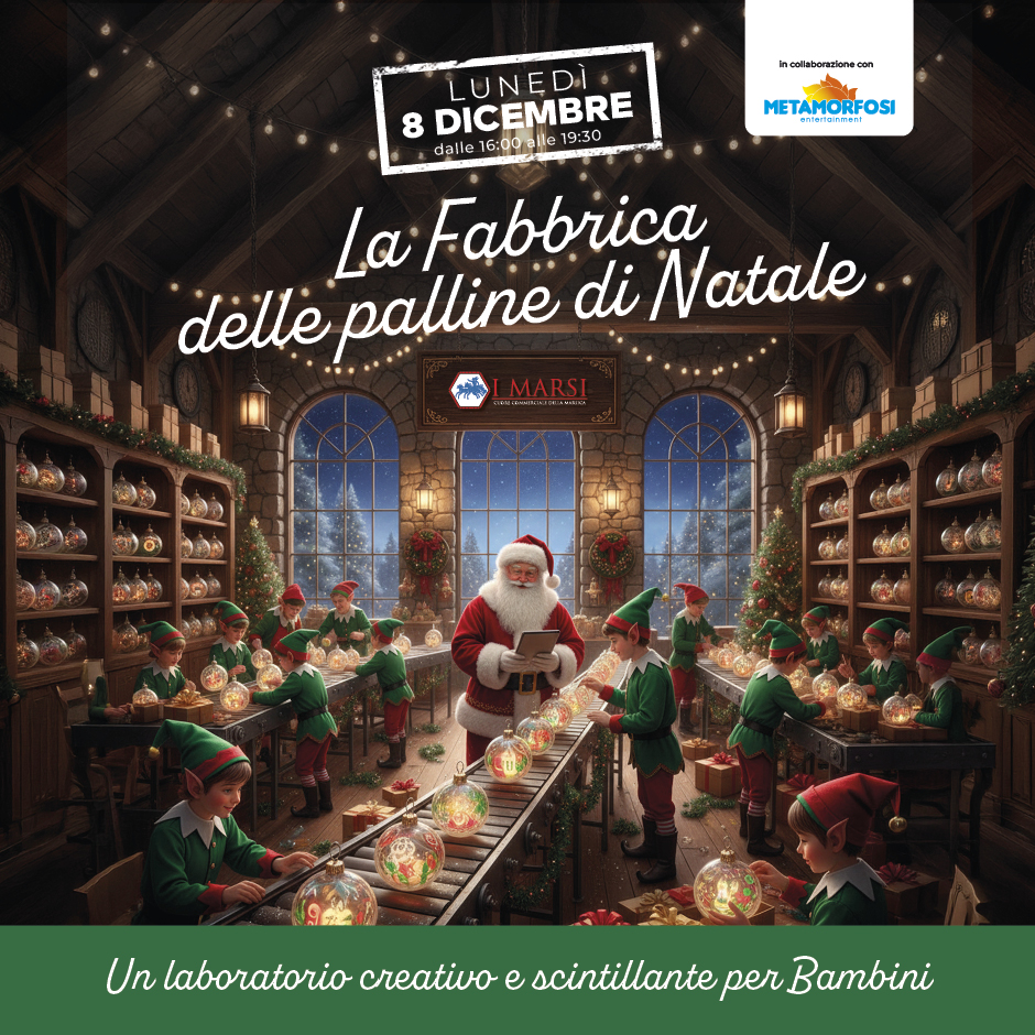 Domenica 8 dicembre, dalle ore 16:00,  accompagna i più piccoli al laboratorio speciale dove potranno creare la propria pallina natalizia personalizzata, scegliendo tra glitter scintillanti, neve finta, nastri colorati e tutta la fantasia del Natale.