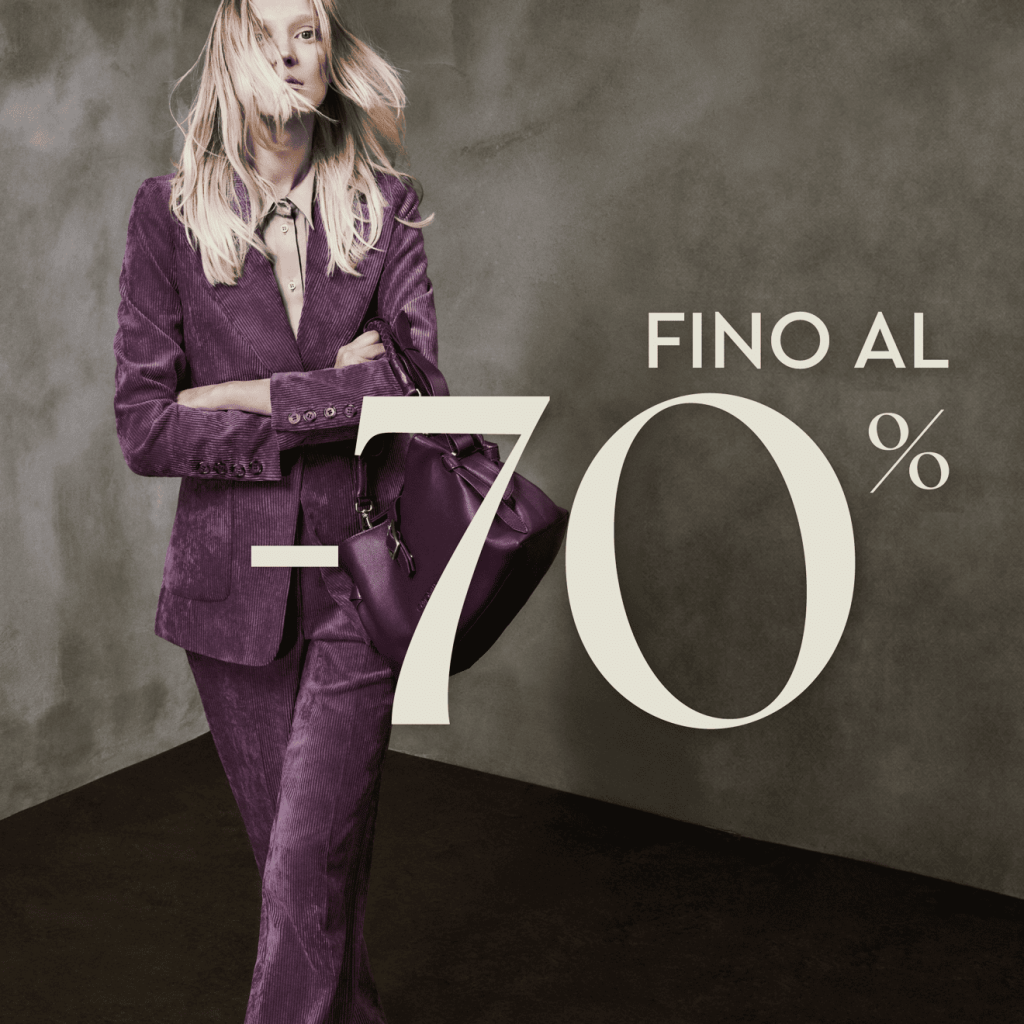Approfitta degli sconti fino al -70% su una selezione di piumini, cappotti, tailleur, maglieria e accessori.