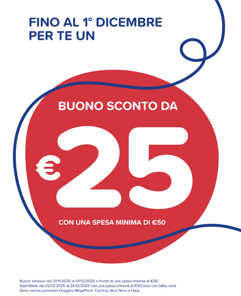 Fino al 01/12 ogni 50€ di spesa ti regala un Buono da 25€ da usare per i tuoi acquisti natalizi.
