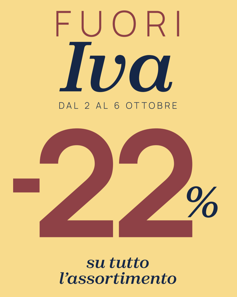 Fino al 6 ottobre approfitta della promo FUORI IVA: -22% su tutto l’assortimento. 👶🍼
