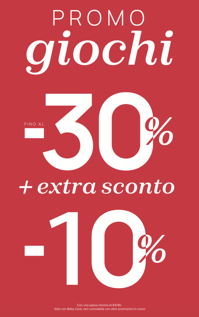 Fino al -30% su tutti i giochi + un extra sconto del -10% con una spesa minima di 9,90€, corri in negozio da Chicco, hai tempo fino all’8 dicembre!