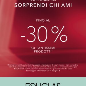 *La promozione è valida dal 23/04/2025 al 11/05/2025 su tantissimi prodotti, ad esclusione di alcuni marchi, e non è cumulabile con altre promozioni in corso. La promozione è valida solo per i possessori di Douglas Beauty Card. Per maggiori informazioni vai su douglas.it.