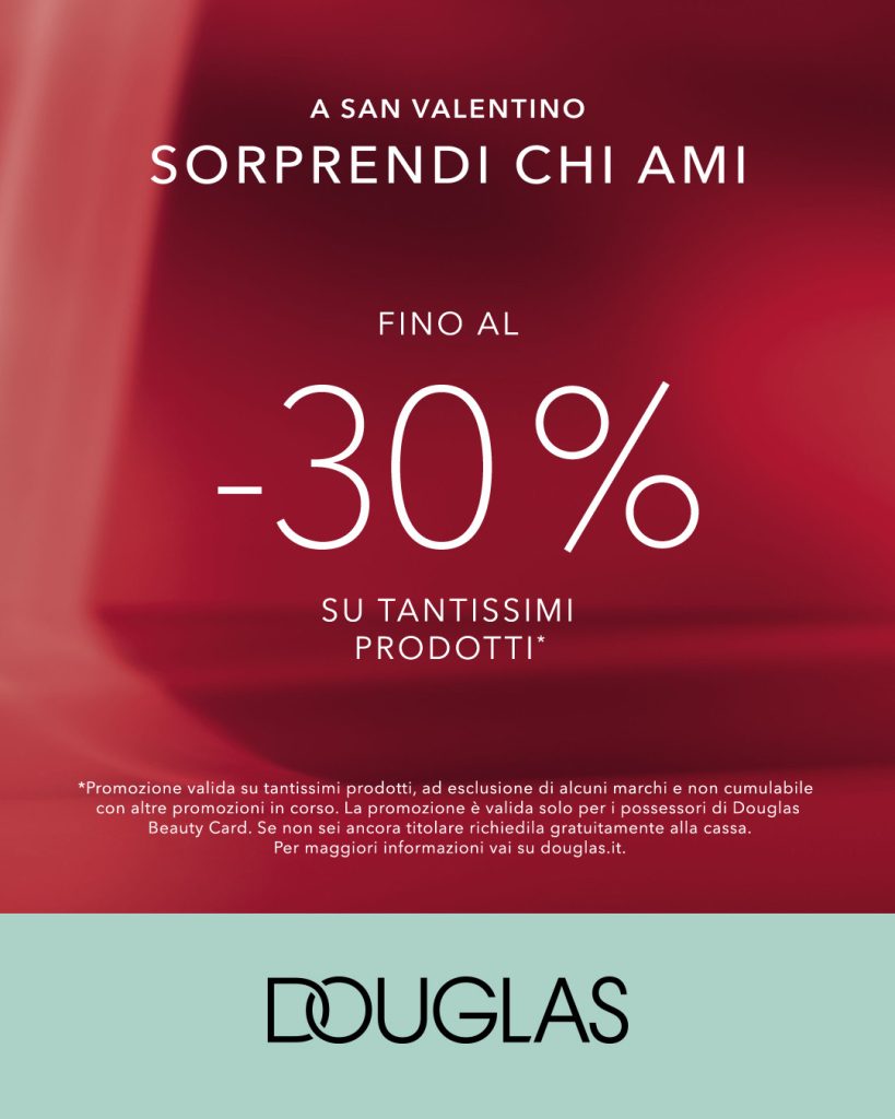 *La promozione è valida su tantissimi prodotti, ad esclusione di alcuni marchi e non è cumulabile con altre promozioni in corso. La promozione è valida solo per i possessori di Douglas Beauty Card. Per maggiori informazioni vai su douglas.it