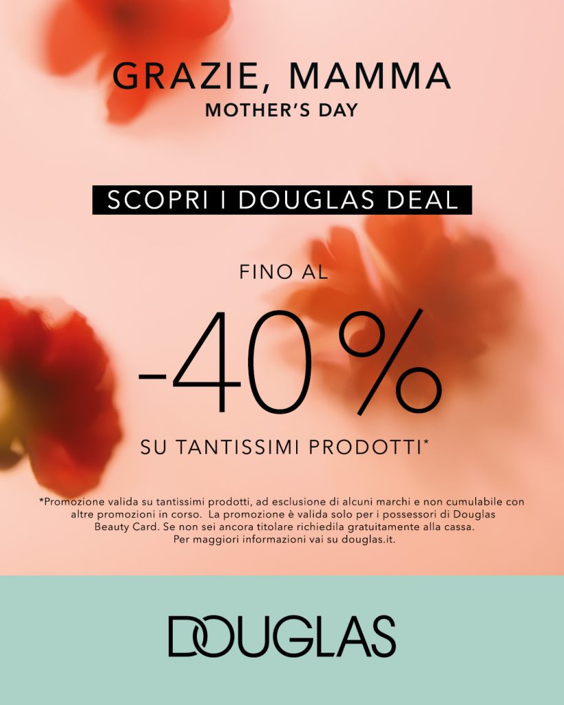 *La promozione è valida fino al 10/05/2026 su tantissimi prodotti, ad esclusione di alcuni marchi, e non è cumulabile con altre promozioni in corso. La promozione è valida solo per i possessori di Douglas Beauty Card. Per maggiori informazioni vai su douglas.it.